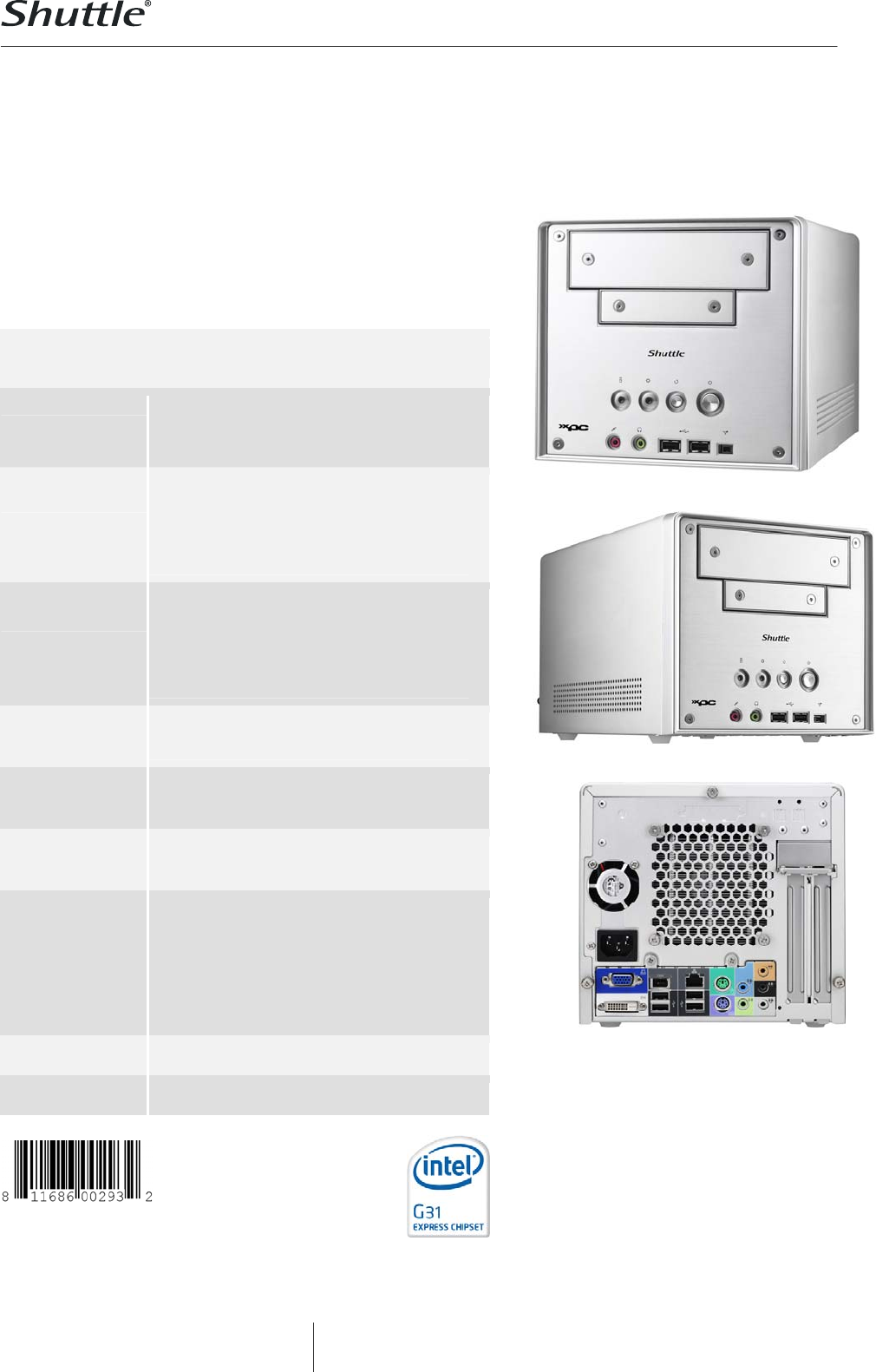 The Shuttle XPC Barebone SG31G2V2 Silver offers some of the latest
