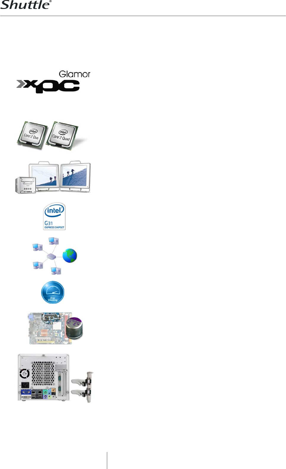 This Shuttle product supports the Intel® Core™2 Duo and Intel®
