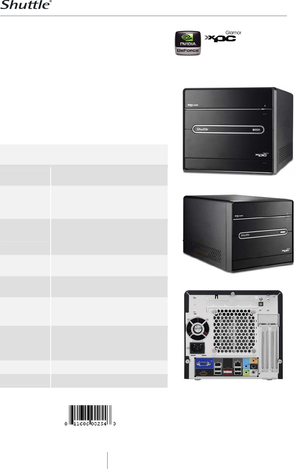 Product Specificationswww.shuttle.com Shuttle Computer Handels GmbH Fritz-Strassmann-Str. 5 25337 Elmshorn | Germany Tel. +49 (0) 4121-47 68 60 Fax